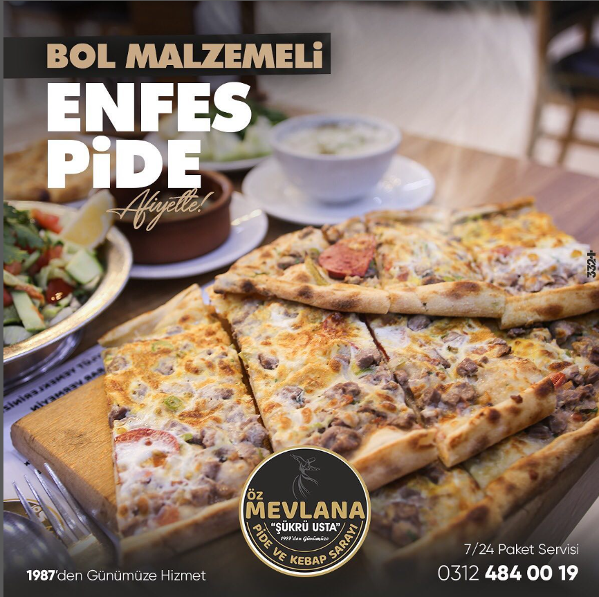 1987'den günümüze LEZZETLİ BİR YOLCULUK... ŞÜKRÜ USTA ÖZ MEVLANA PİDE KEBAP SALONU Gölbaşı, Ankara'nın sakin ve huzurlu ilçelerinden biri olmasının yanı sıra, zengin mutfağıyla da adından söz ettiriyor. Özellikle Türk mutfağının vazgeçilmezleri arasında yer alan pide ve kebap, Gölbaşı’nda da kendine geniş bir yer bulmuş durumda. Bu lezzetleri en iyi şekilde sunan mekanlardan biri ise ŞÜKRÜ USTA ÖZ MEVLANA PİDE KEBAP SALONU. ŞÜKRÜ USTA ÖZ MEVLANA PİDE KEBAP SALONU, bölg